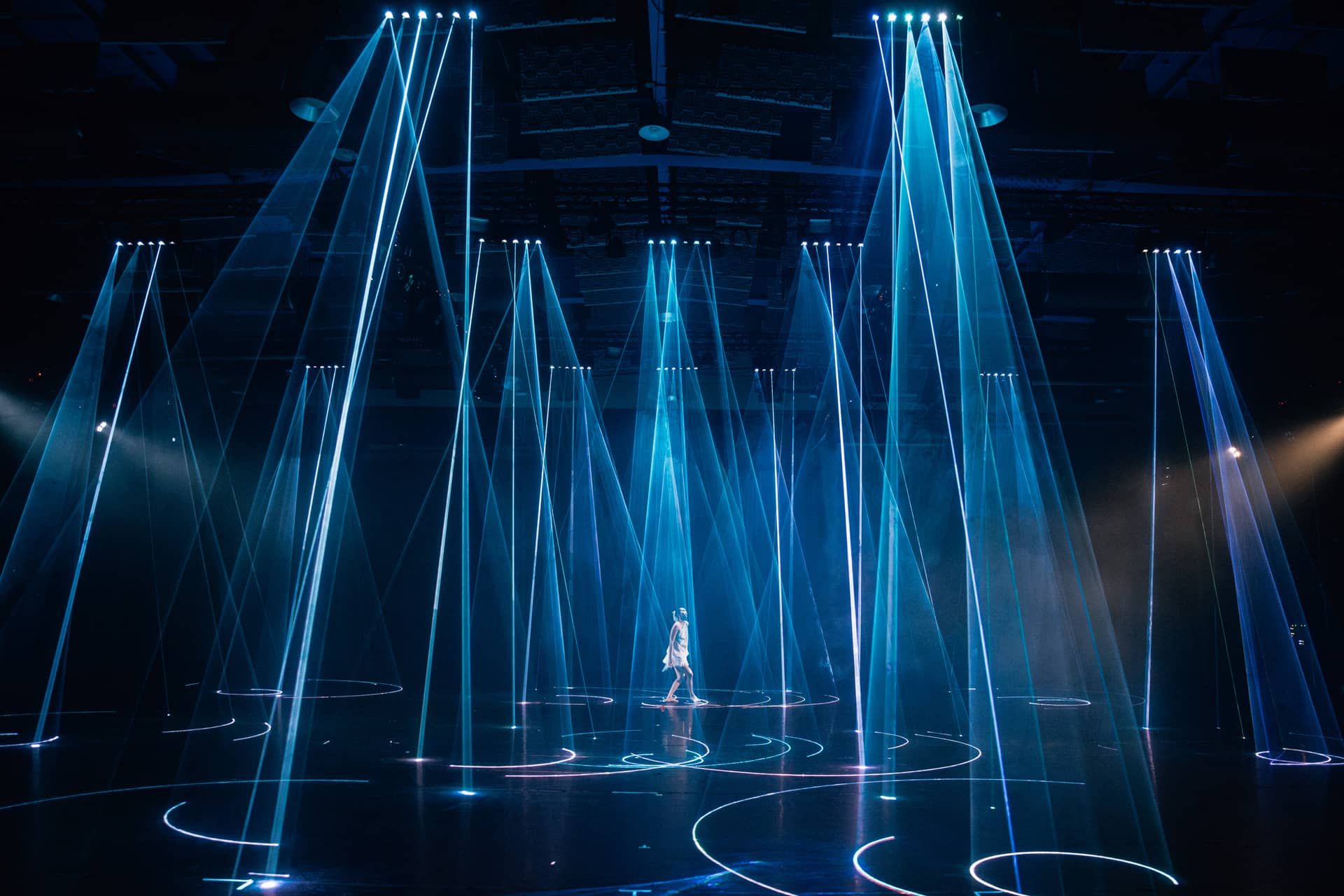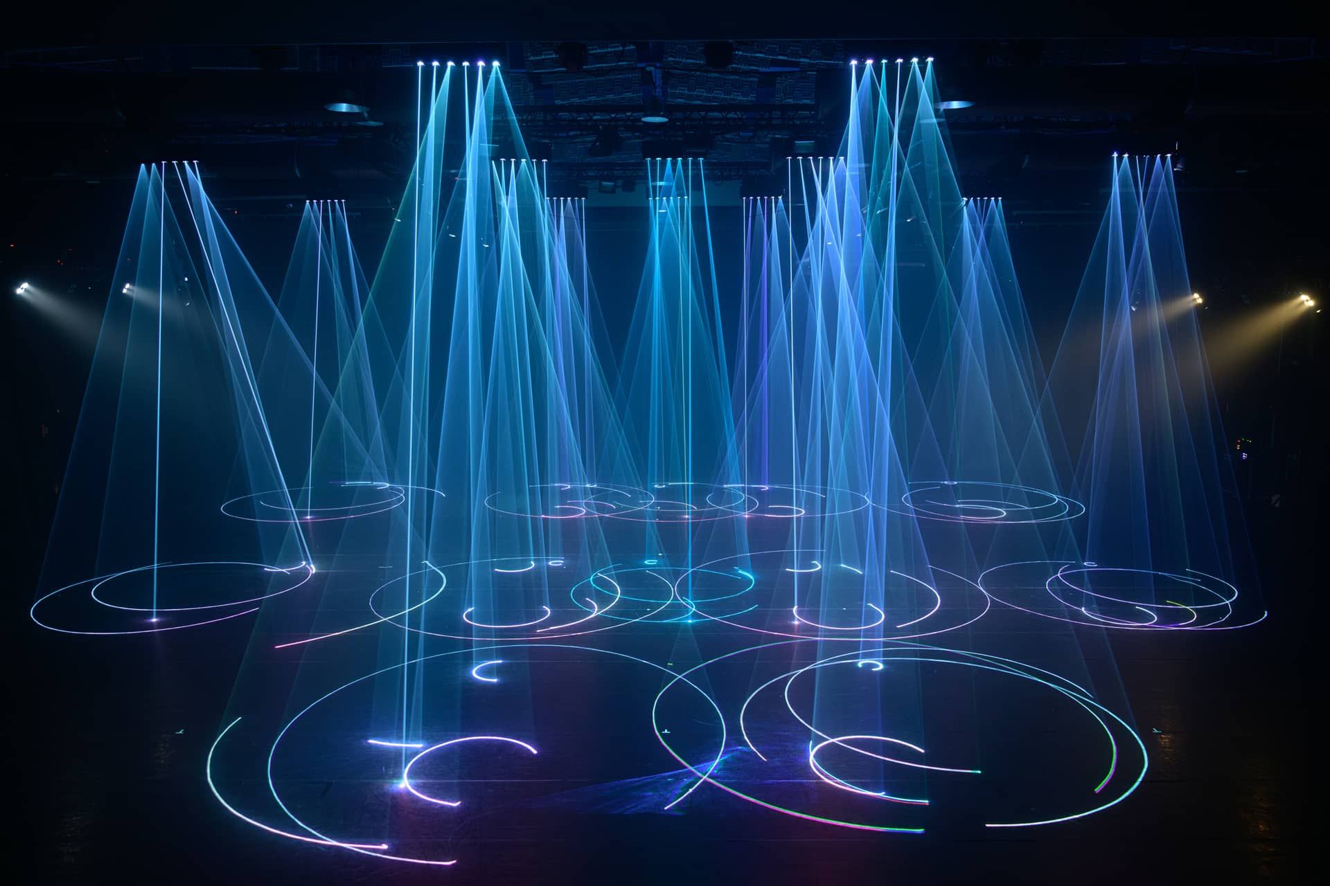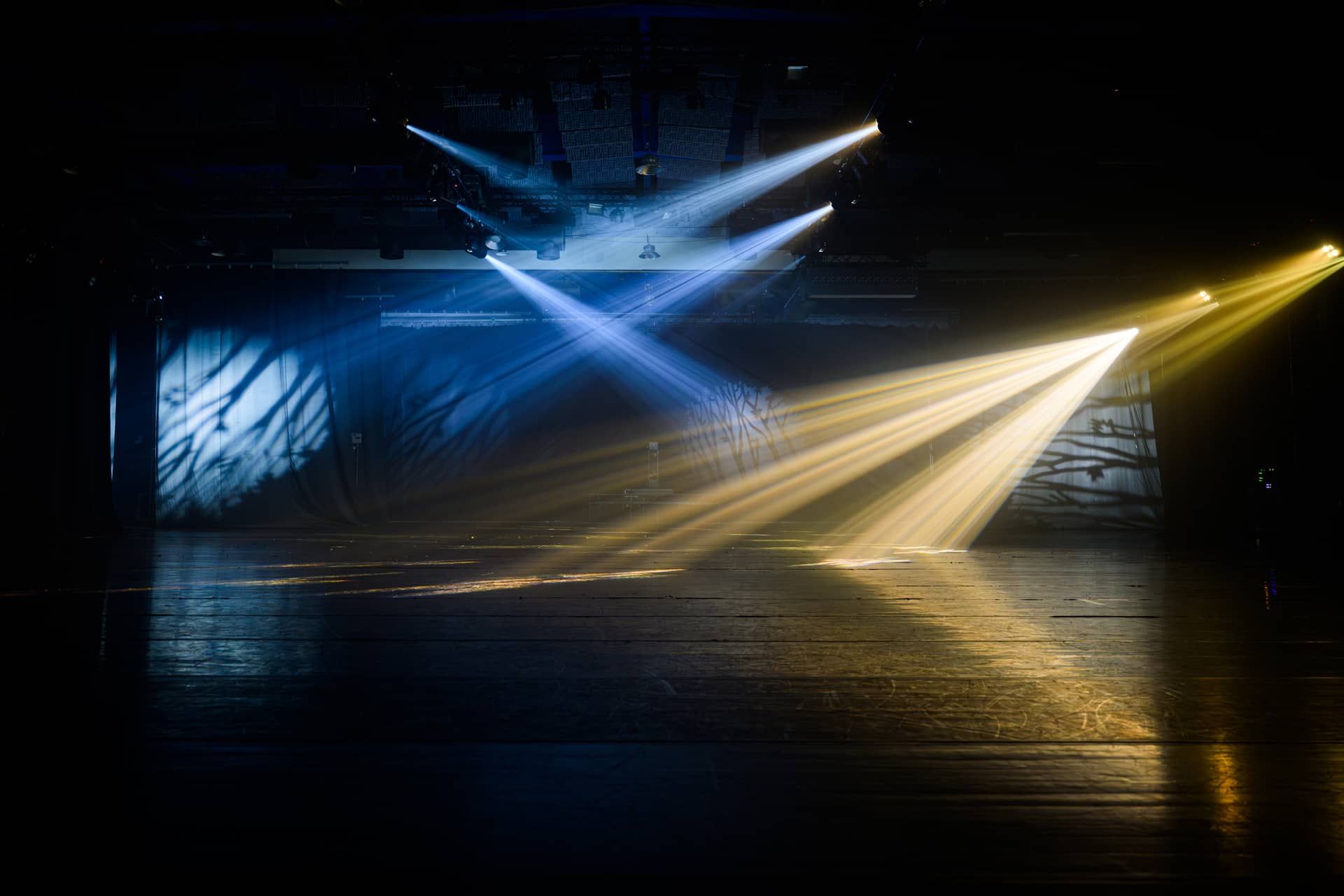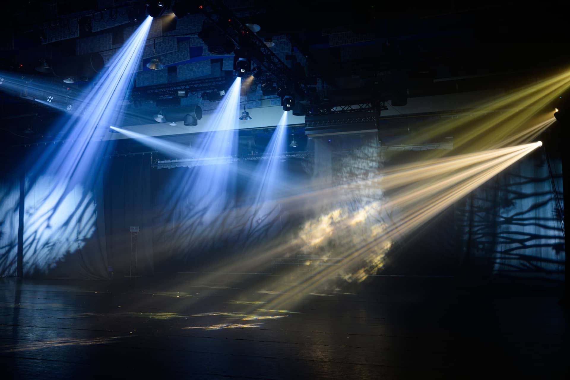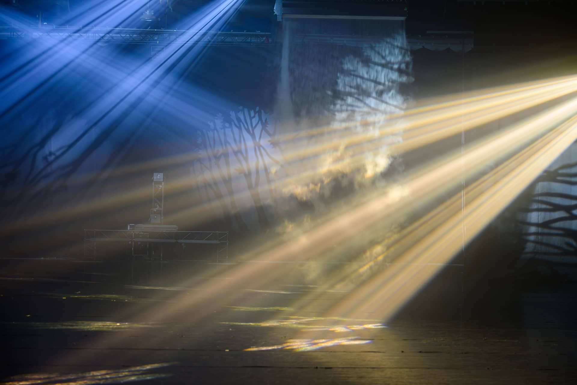 Using 360-degree rotating moving heads to display forest shadows all around.