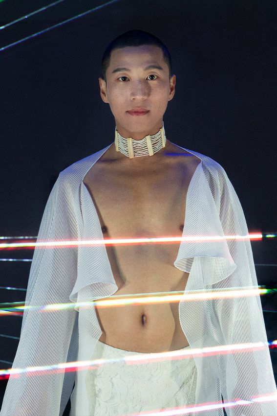 In 2023, we launched the development of a theater version led by visionary direction of Shu Lea Cheang and artistic dedication of Dondon Hounwn. In this first stage presentation of HAGAY DREAMING theater version, a revised stage play along with renewed choreography, music composition, and costume design are further enhanced with updated applications in motion capture and image processing. Further development in intricate laser programming converts the pouring rain, the transfer of knowledge in knitting and hunting into dazzling projections of laser beams.